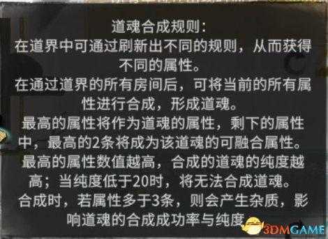 道魂纯度到一百需要至少四条同资质属性的词缀,内容不重要,不影响通关道界就行。