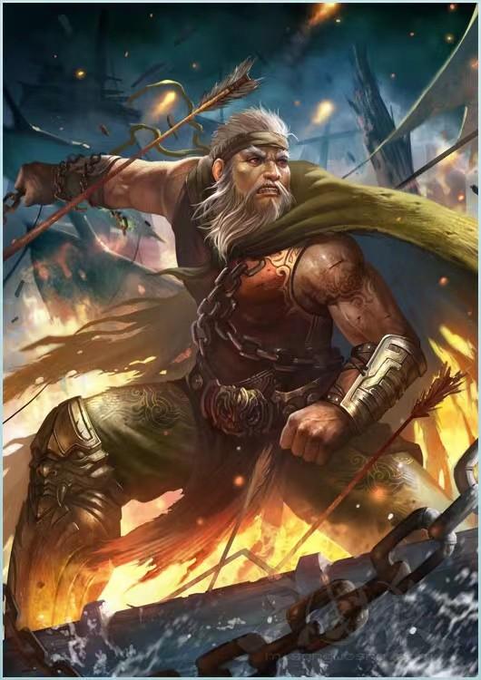 黄盖,字公覆,零陵泉陵人。东汉末年东吴名将,历仕孙坚、孙策、孙权三任。为人严肃,善于训练士卒,每每征讨,他的部队皆勇猛善战。早年为郡吏,后随孙坚走南闯北。孙坚遇难后,黄盖跟随孙策、孙权“擐甲周旋,蹈刃屠城”。建安十三年,随周瑜在赤壁抵抗曹军,与之隔江相望。建策火攻,并遣人送伪降书给曹操,后大败曹军升武锋中郎将。