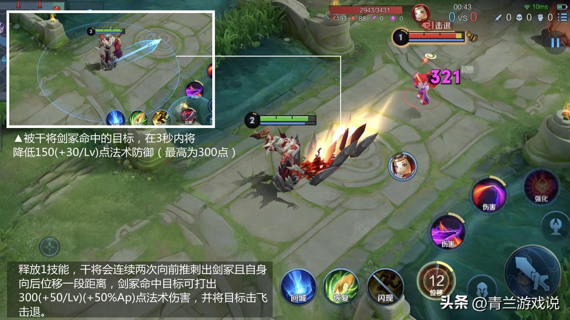 干将莫邪技能难度不高,但是“命中”以及打出最大化伤害却有一定难度。合理的把控技能攻击距离,并掌握一套适合于呈现最大化输出的技能释放思路,是玩好干将莫邪这位英雄的重点。