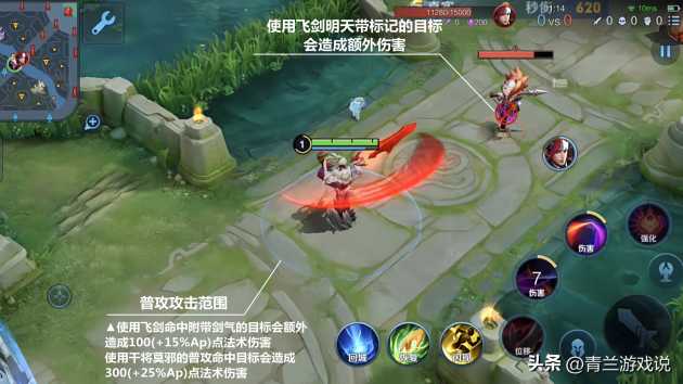 小提示:在寻找到合适的攻击距离后,直接点击3技能释放飞剑,小幅度拉动2技能使侧边剑完成命中,以此触发被动效果打出高额伤害。