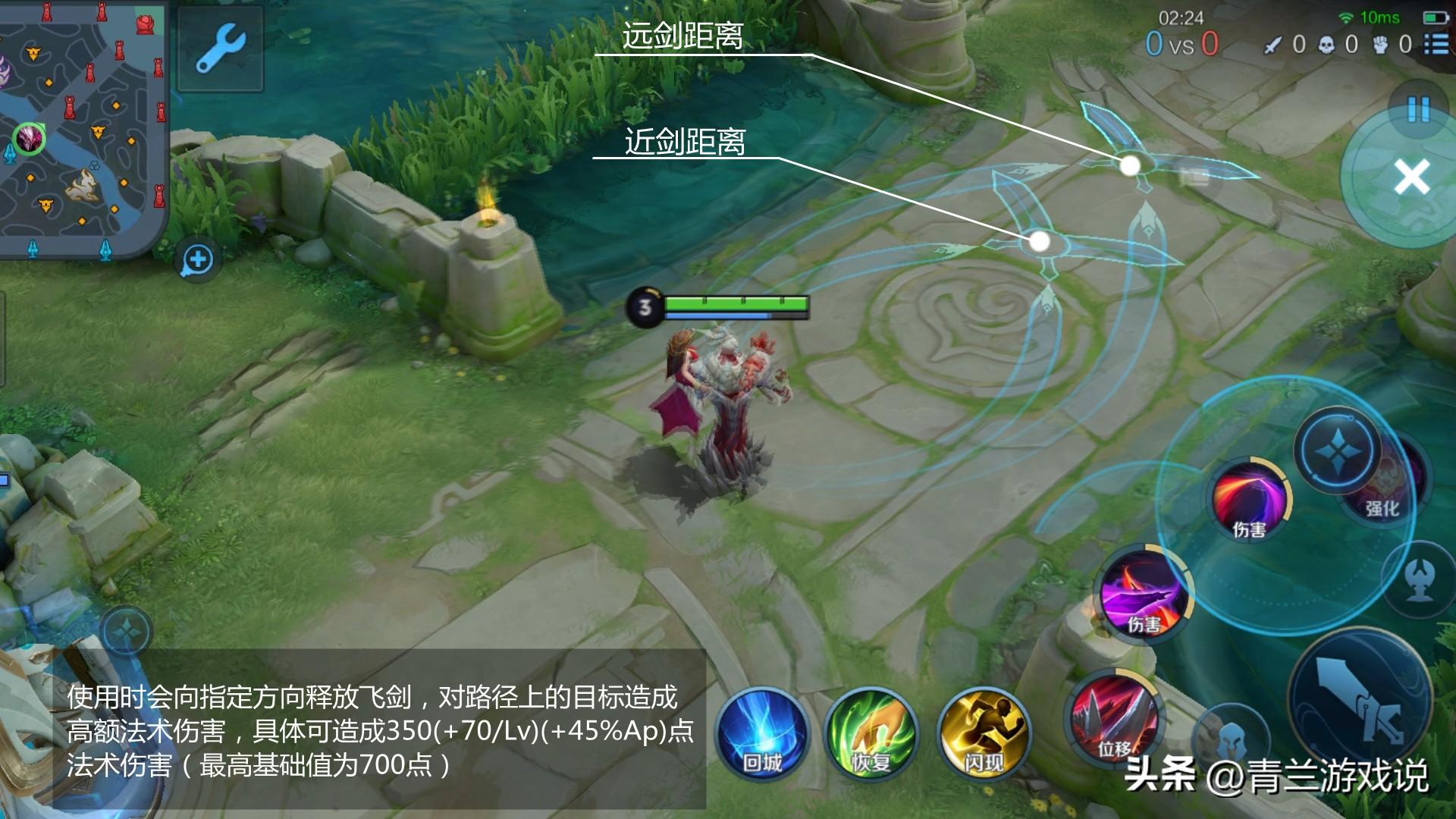 2技能的攻击距离短,飞剑的速度相对更快一些,使用“2闪”进场,对手会很难在短时间内走位躲闪。