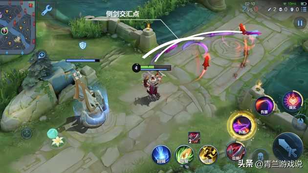 开局后优先选择2、3技能,兵线交汇后利用3技能交汇点瞄准末尾小兵,并将侧剑轨迹瞄准前排小兵,然后利用短剑重复以上操作。