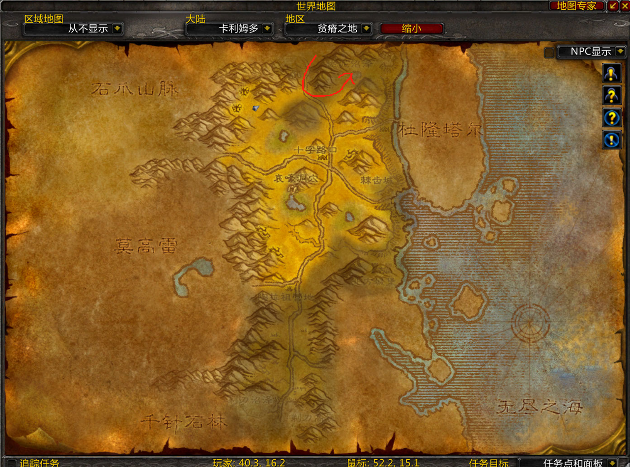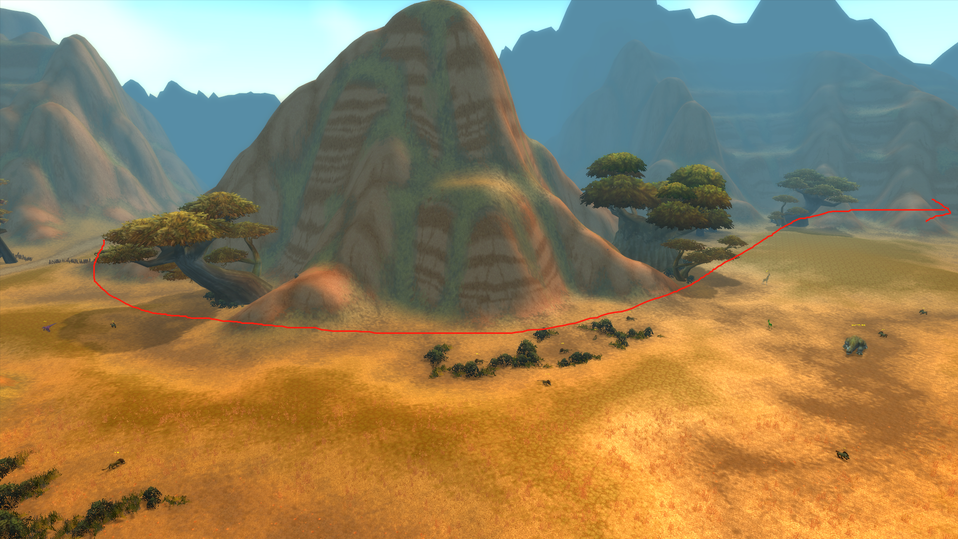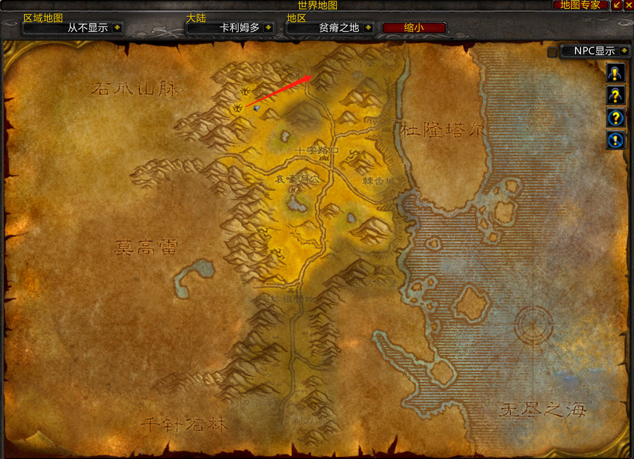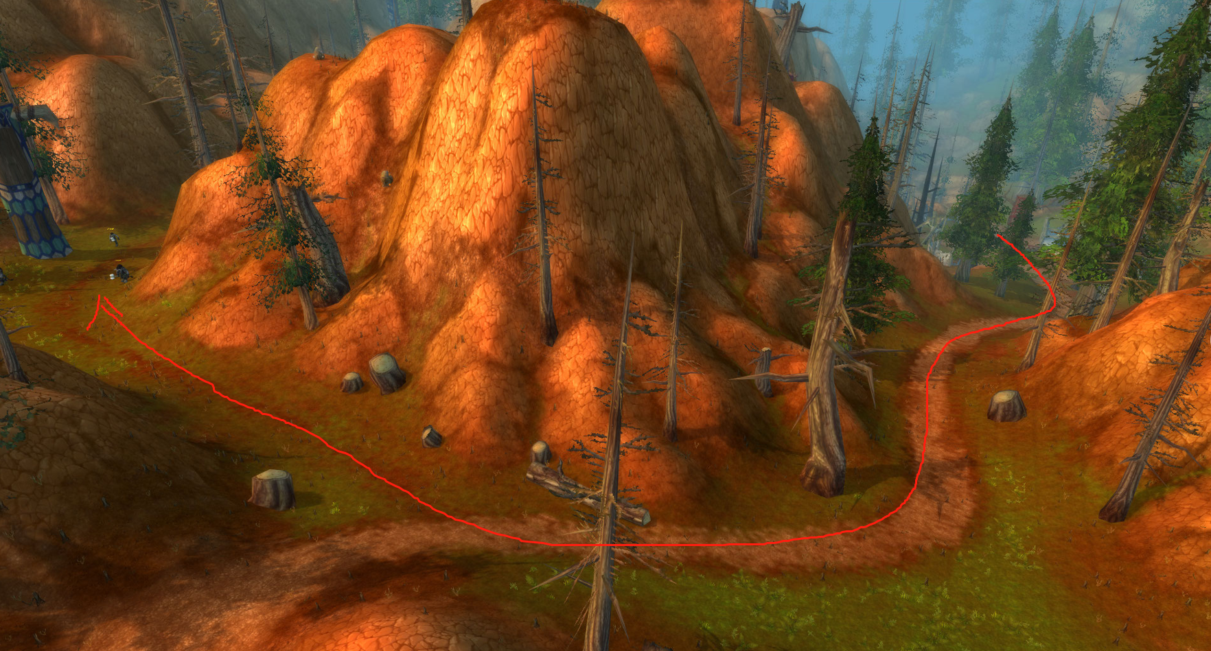 飞机到奥格瑞玛(纯粹就为了学个生命分流,少按两下。不介意的也可以不去的。如果不学分流,可以直接出门了。)。回到十字路口后,从接斑马的威胁旁边的门出去,贴山边走。走到图3处。去打人生第二个很烦的任务。运气好,1怪刷任务怪。运气不好,1-2个小时不等。