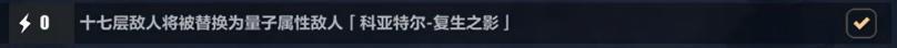 ⑤ 第17层boss建议选科亚特尔(别名量子泥鳅),第18层英桀boss建议选维尔薇,没解锁的话就选爱莉希雅。