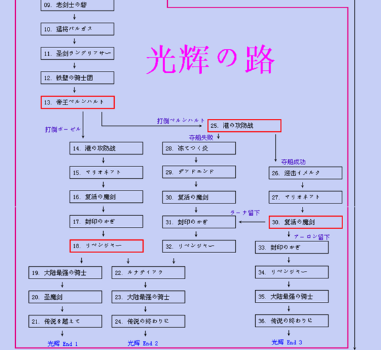 以下图片出自“梦幻模拟战专题站”,详细表述了DER L的各条路线及不同结局。