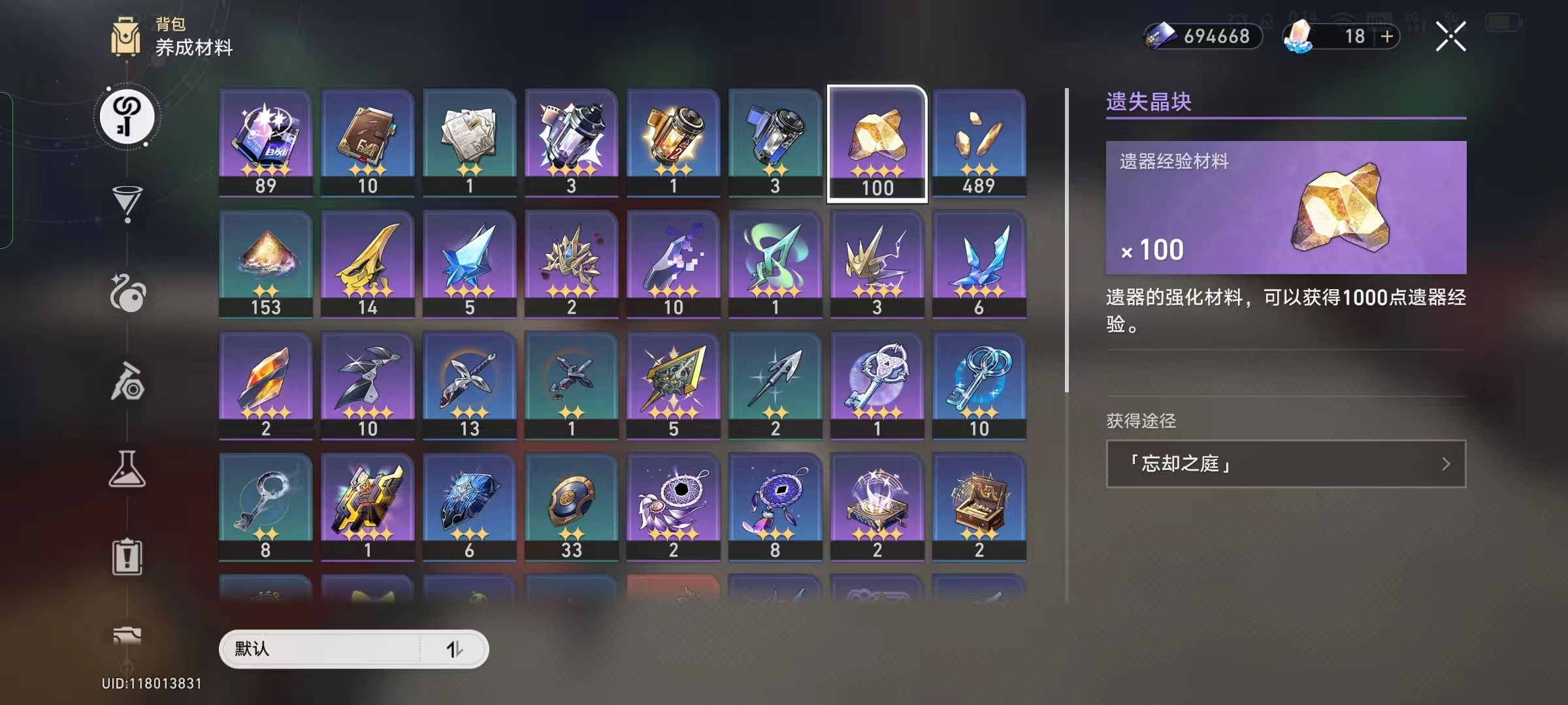 我们做任务、开宝箱都会赠送遗器物的,可以先用这些遗器进行过渡。