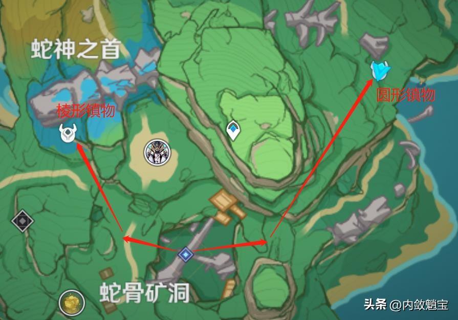 回到任务处,朝地图右上角雷种子进入洞穴,在最底下瀑布旁取得棱形镇物。(方块解密:左1右2)
