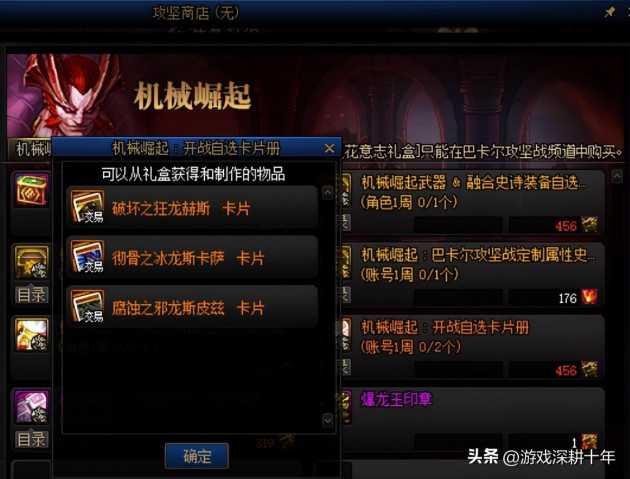 还有机械七战神商店 黑暗之眼卡片册,也有几率开出首饰传说卡片