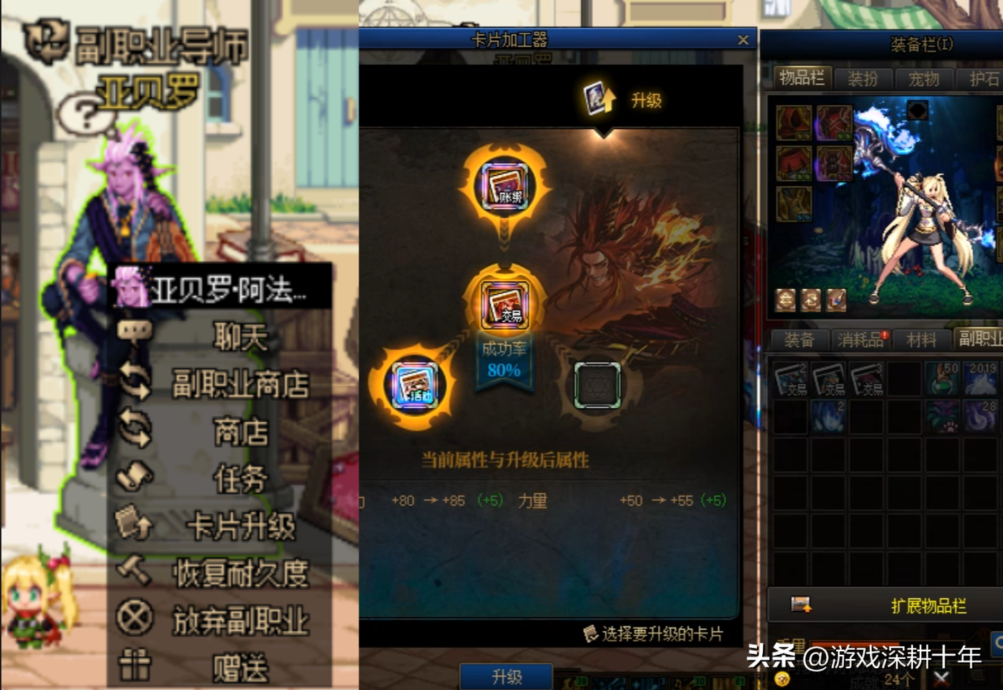 有了传说卡片,卡片升级是在西海岸, 副职业导师 亚贝罗那里升级