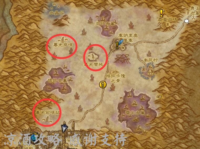 首先是打怪,在地图上暮光教派的活动区,如下图标记的区域: