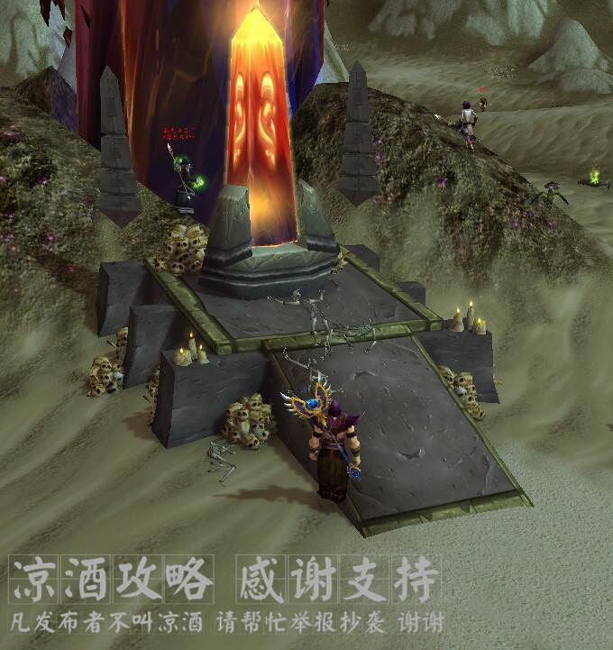 看到石头旁边的尸骨了吗,这都是莽夫......如果你不穿着暮光三件套就去点风石的话,会直接落雷劈你,轻则半血重则秒杀,穿上了就不劈你了。