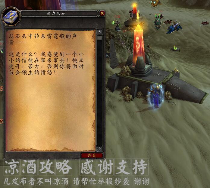 这三件套持续时间是1天,当然这东西本意不是让你当幻化的.....在暮光信徒的营地,就是上上上上图我画圈的地方,会有这种形状的石头,鼠标放上去会显示叫“风石”: