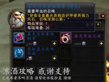小风石的召唤道具在暮光营地打怪就掉,能直接从小风石那里召唤深渊骑士,打死了不给阵营分,给深渊纹章。