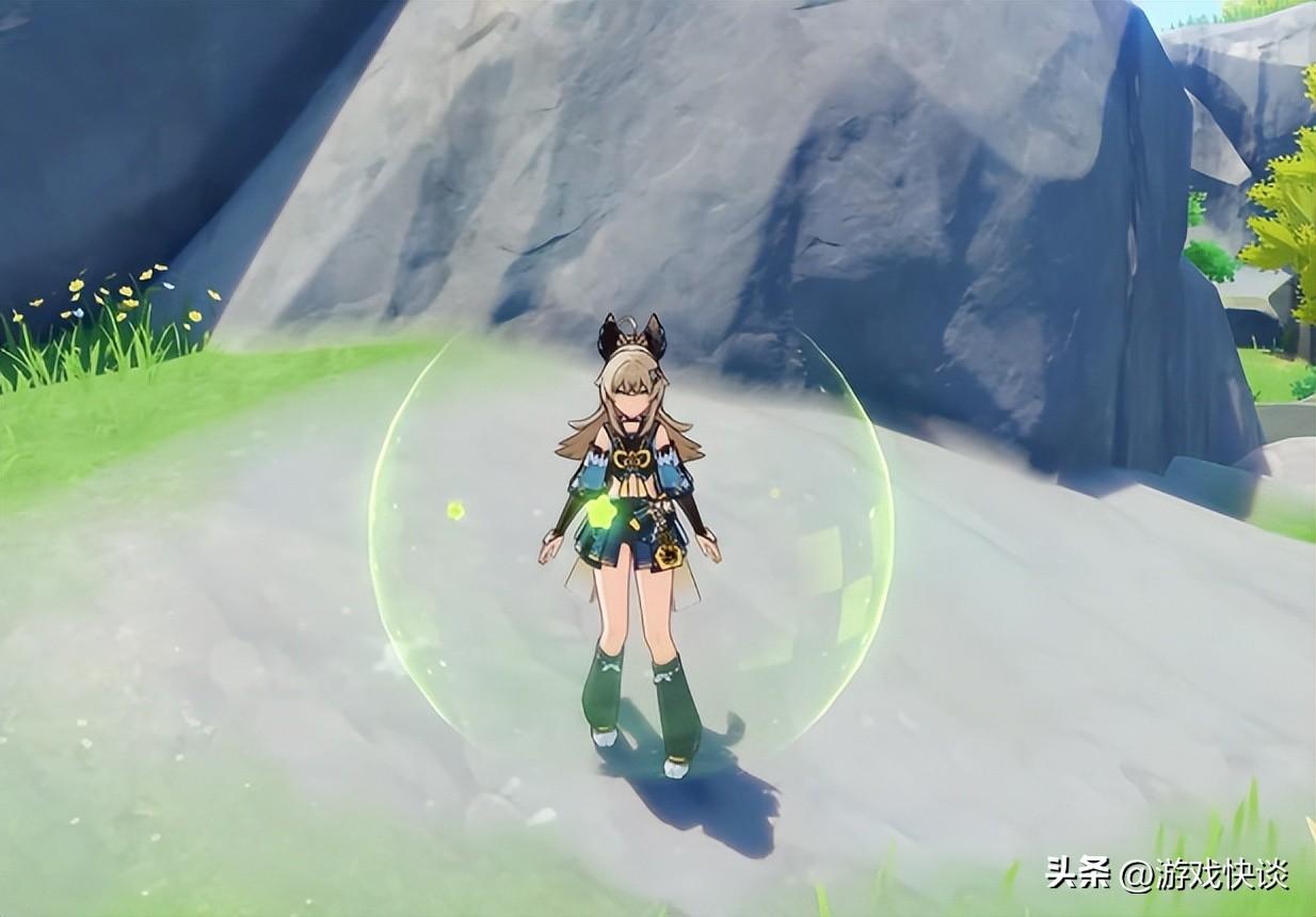 首先要知道,绮良良的定位是拥有一定挂草能力的盾辅角色,核心天赋为元素战技,短按触发草元素伤害并为自身套盾,与迪奥娜十分类似。