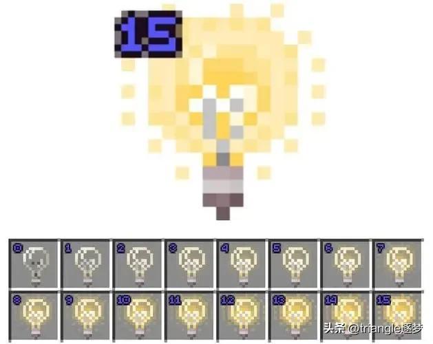 光明方块有1~15的亮度,放置于方块之后无法被挖除,但所附着方块被挖除或光明方块被覆盖,光明方块会消失。