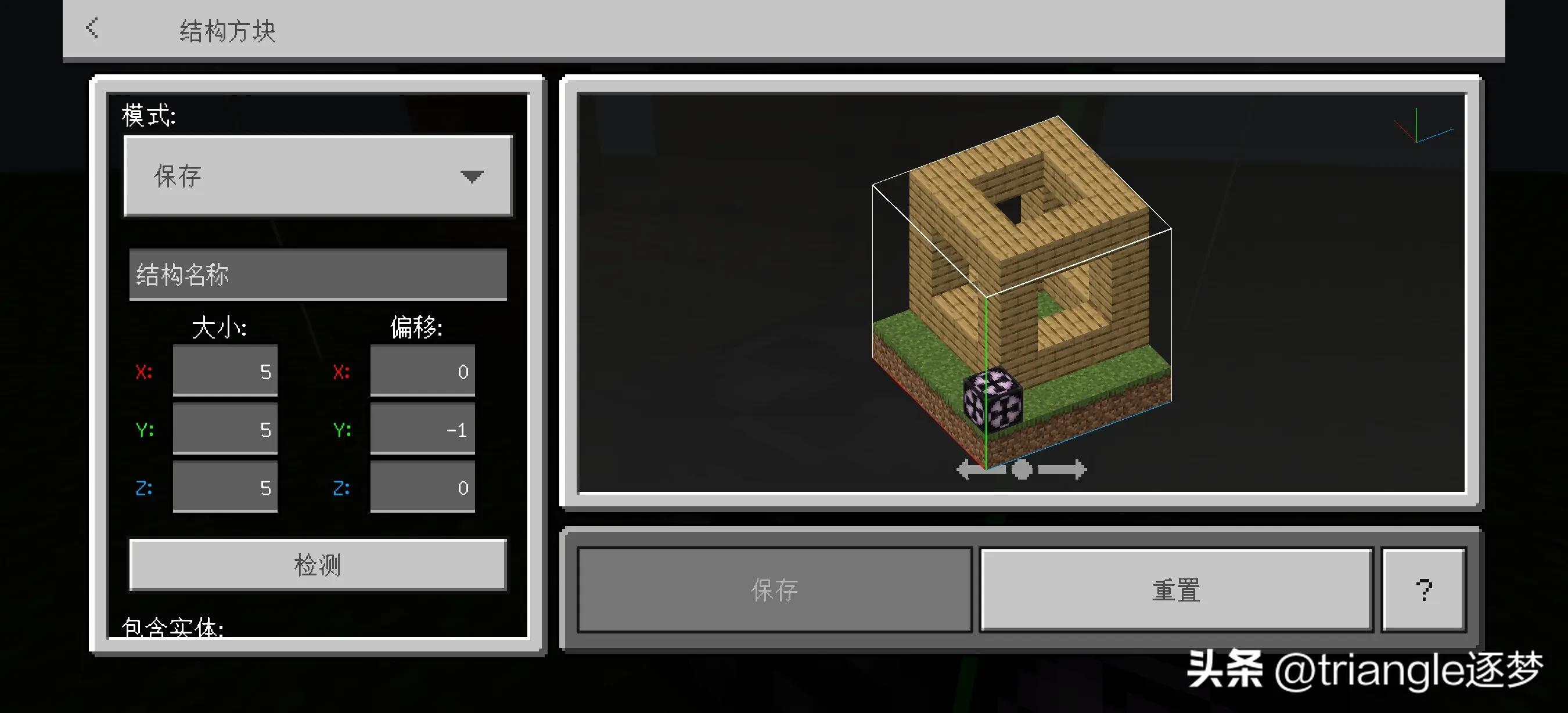 结构方块拥有两个普通状态:复制;加载,类似于复制粘贴。