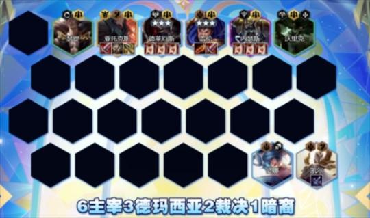 2、阵容羁绊:6主宰3德玛西亚2裁决1暗裔