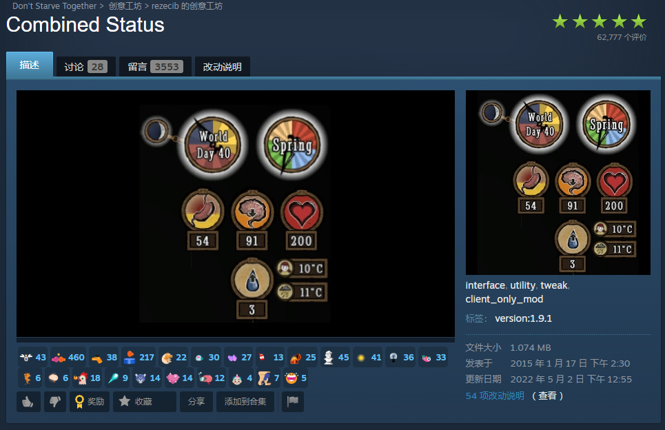 这个模组可以显示人物和季节的状态,你可以清晰地看到自己的生命值、饥饿度和精神值,还能了解当前季节剩余的天数。这样你就能有足够的准备,做好物资储备工作。只有深入了解自己和世界的变化,才能在这个世界上生存更久。