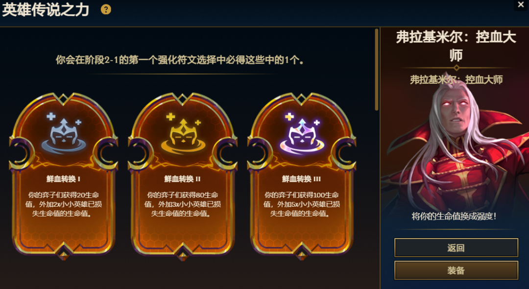 吸血鬼的开局专属强化是鲜血转换。白色的可以刷掉,金彩最强。