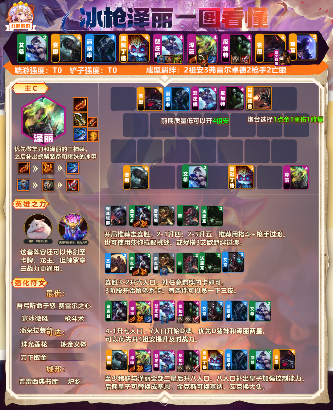适合阵容:皮枪泽丽、冰枪泽丽、堡垒射、暗影岛双C。