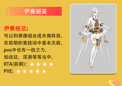 可以和偶像组合成木偶阵容,在前期的竞技场中基本无敌,pve中也有一战之力,如远征,深渊等等当中。